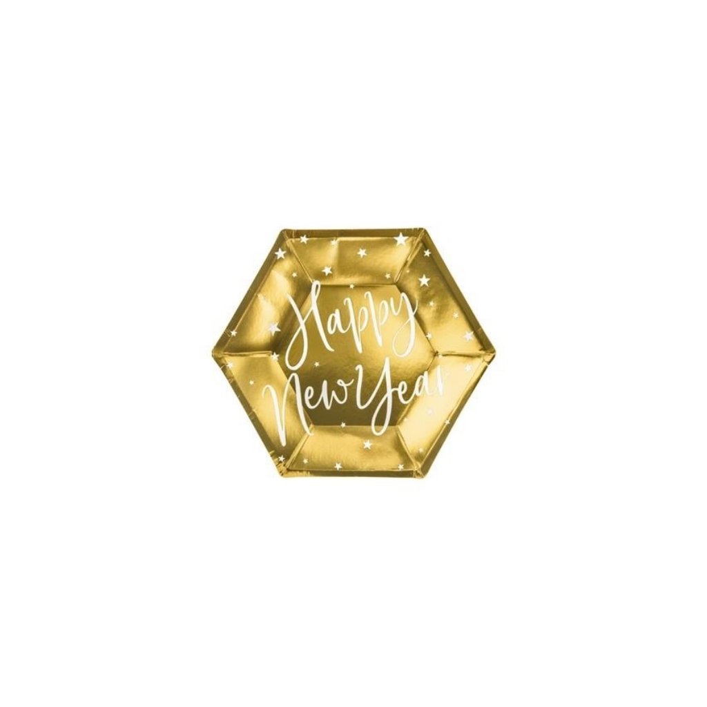 PartyDeco papírové talíře zlaté Happy New Year (6 ks) ▹ /BP