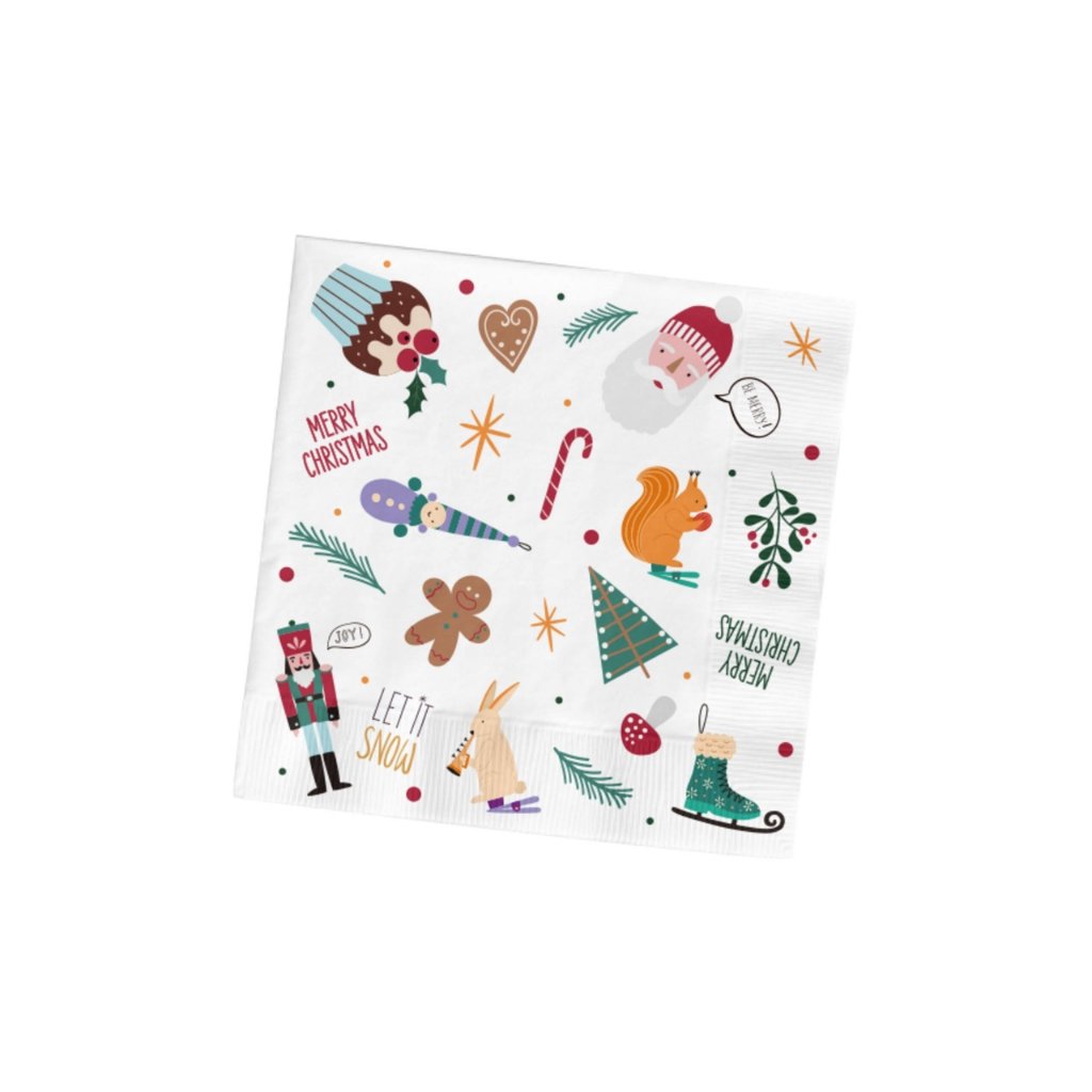 Klasické papírové ubrousky s motivem složených ze symbolů Vánoc, vhodné na vánoční večírky a akce. Pomůže vám s výzdobou stolu a zároveň zařídí čistotu po hostu. Rozměry: 33 x 33 cm. Balení: 20 ks.Doplňkové parametry