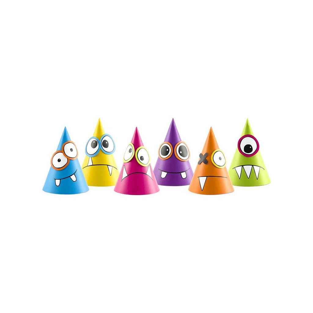 Cukrářské potřeby a suroviny pro sladké pečení.Produkt pro domácí cukráře: Párty čepičky Monster 16cm 6ks - PartyDeco ,