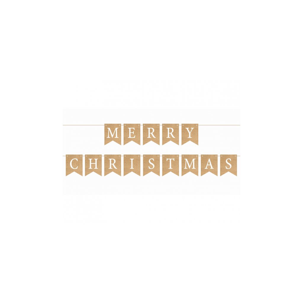 Papírová vlaječková girlanda s nápisem Merry Christmas v jutovém motivu. Vhodná k vánoční dekoraci večírků a jiných akcí. Rozměr vlaječky: 10 x 13 cm. Balení 1 ks.Doplňkové parametry