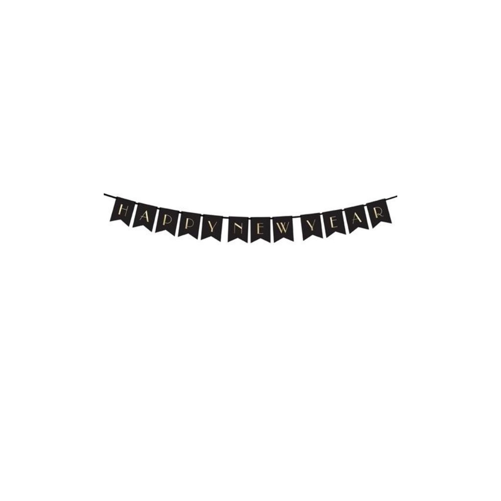 Banner nápis Happy New Year, vhodný na silvestrovké dekorace a další novoroční akce. Velikost: 15 x 170 cm. Balení: 1 ks.Doplňkové parametry