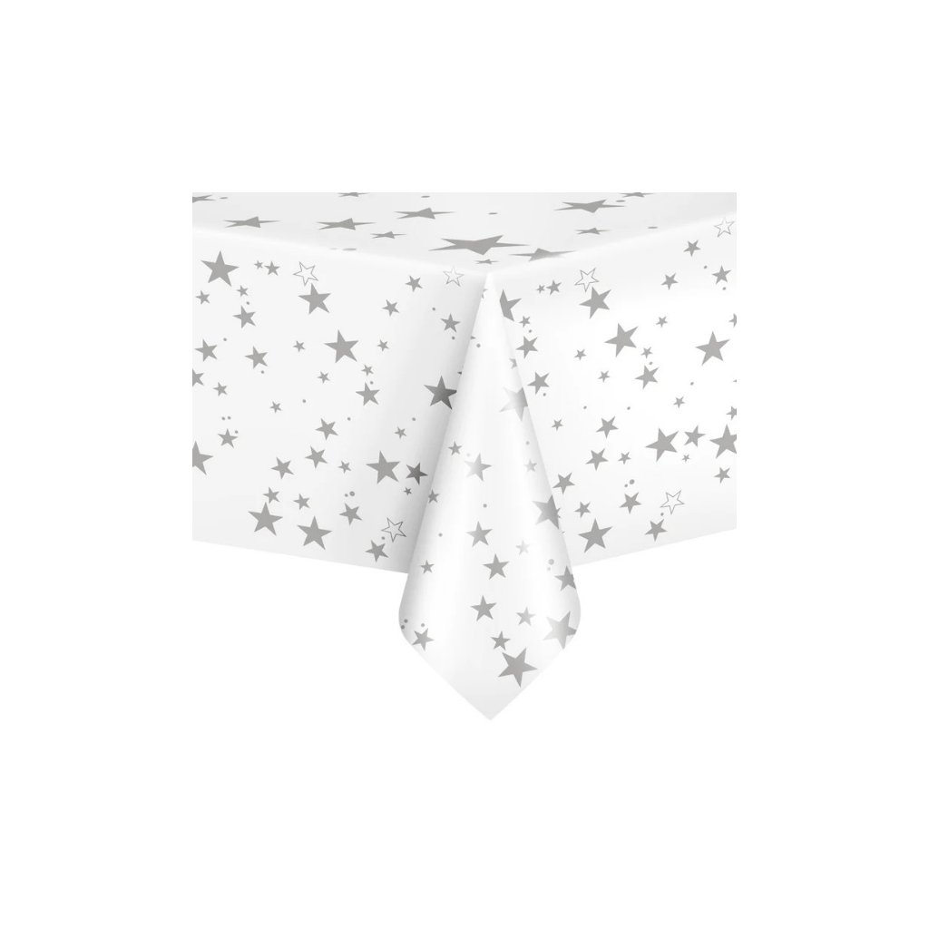 Plastový bílý ubrus se stříbrnými hvězdičkami o velikosti 137 x 274 cm, vhodný jako dekorace i ochrana stolu na tematickou párty, oslavu narozenin i silvestrovský večer. Rozměry: 137 x 274 cmMateriál: PlastBalení: 1 ksDoplňkové parametry