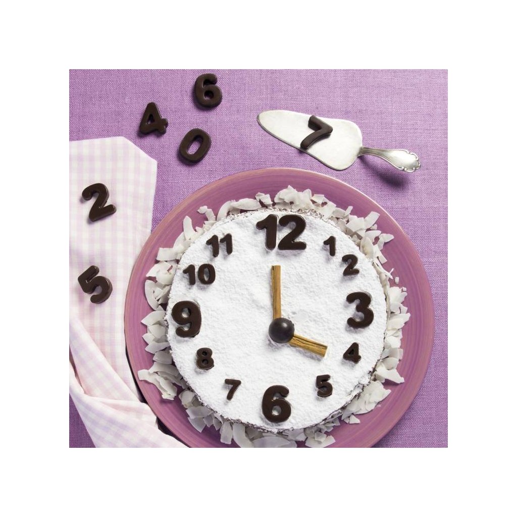 Kvalitní silikonová forma na výrobu čokoládových číslic. Výška číslic: 2 cm Použití: Do formy nalijte rozpuštěnou čokoládu a nechte v lednici ztuhnout. Lze použít i na fondánovou hmotu, isomalt a želatinu.Doplňkové parametry