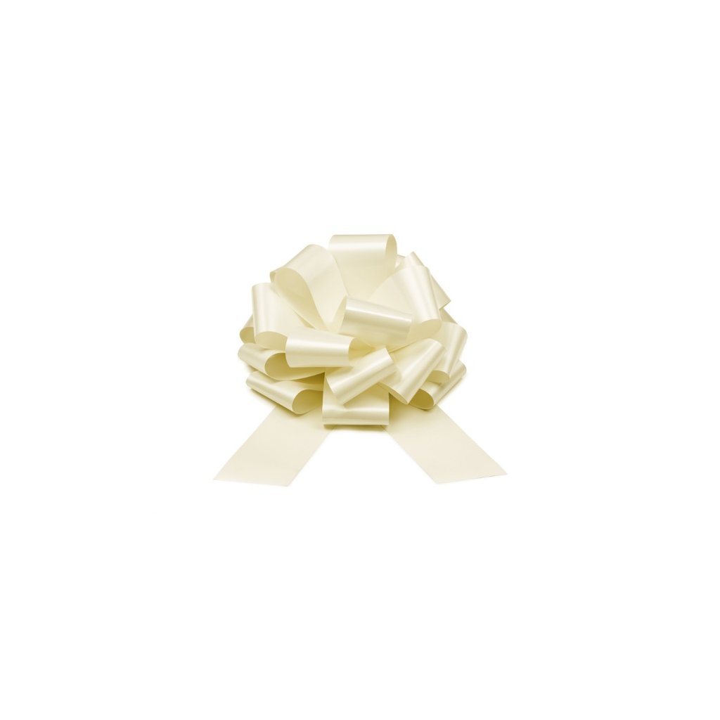 Stahovací mašle krémová - 30 cm, vhodná i na dekoraci auta. Stahovací stuhy jsou vhodné na ozdobení dárků a díky její velikosti se hodí i na velké dárky, které zrovna nejdou zabalit, jako je třeba auto, kolo nebo sekačka na trávu. Lze je použít například na svatbě, oslavě narozenin, křtinách při různém dekorování nebo jako stuhu na dárek či kytici. Jednoduchým zatažením za konce stuh, vytvoříte nádherný ozdobný květ nebo mašli. Šíře: 9 cmDélka: 35 cm Po složení v průměru 30 cmDoplňkové parametry