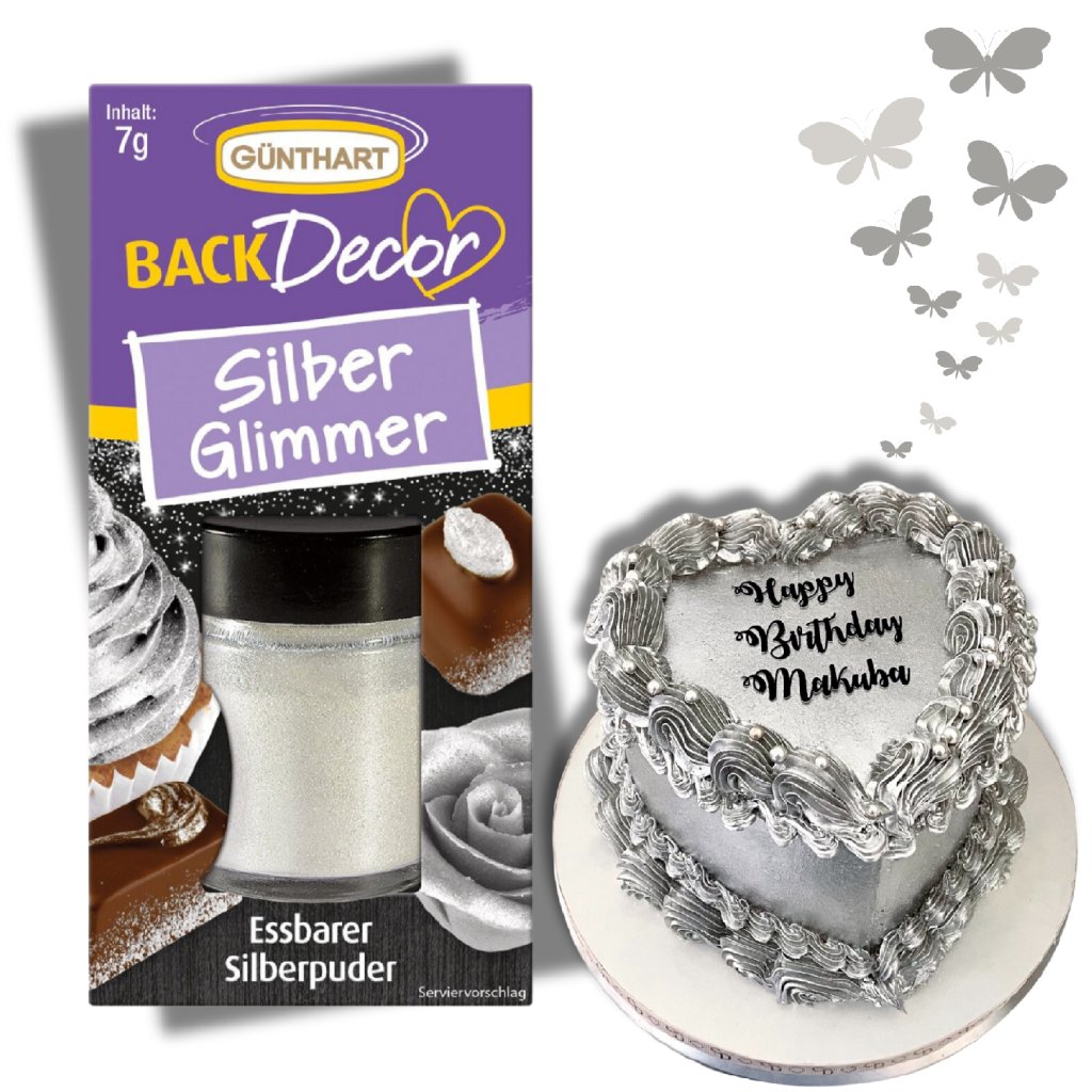 Jedlá stříbrná barva pro cukrářské potřeby. Používejte cukrářský štětec pro přesné povrchové a rovnoměrné nanesení. Stříbrně metalická jedlá barva, lesklá. Je i pro povrchové barvení dortů. Vhodná také pro barvení krémů a čokolád. Před použitím rozmíchejte v malém množství alkoholu jako je vysokoprocentní slivovice nebo potravinářský isopropylalkohol.