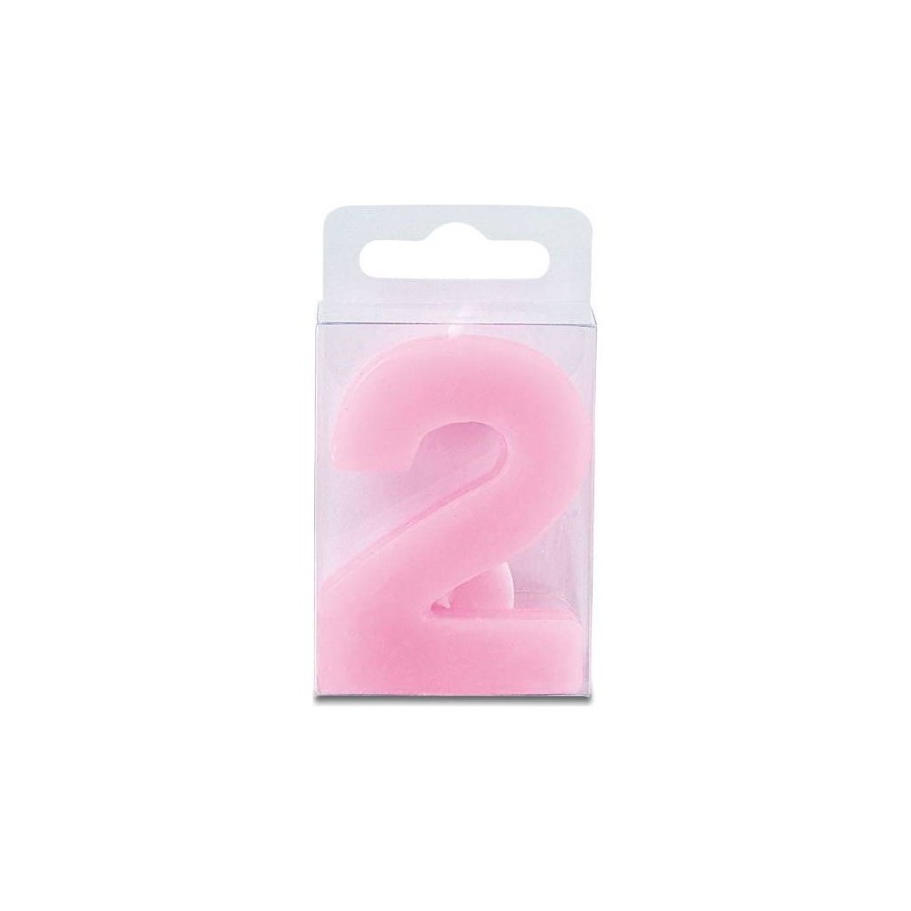 Svíčka růžové barvy ve tvaru číslice 2, vysoká 4 centimetry.Doplňkové parametry