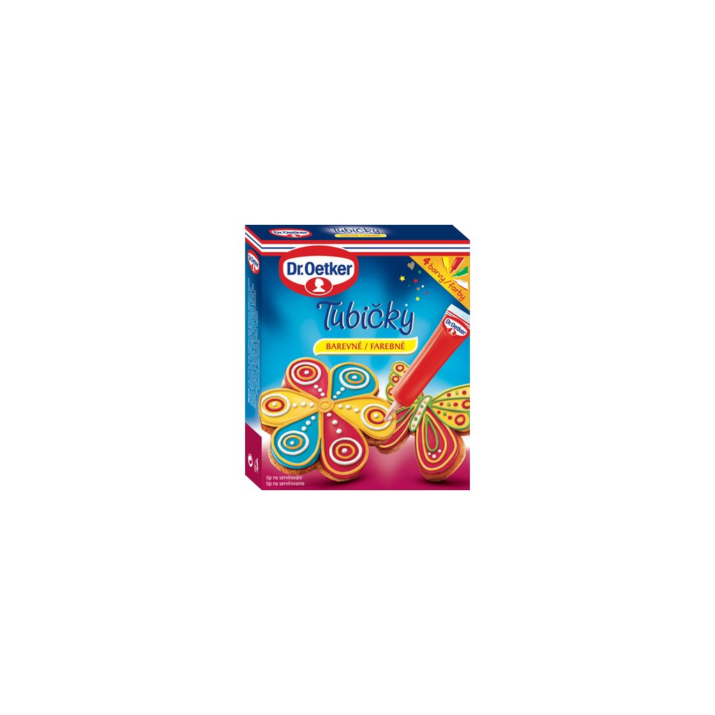 Nakupovat potraviny, drogerii a další potřeby pro domácnost online se vyplatí. Náš online supermarket Terunka.cz, toho má v kategorii: mnohem více. Prohlédněte si celou naší nabídku a ušetřete svůj čas i peníze.Dr. Oetker Tubičky barevné ke zdobení (4 barvy) 76 g za skvělou cenu, máme skladem.