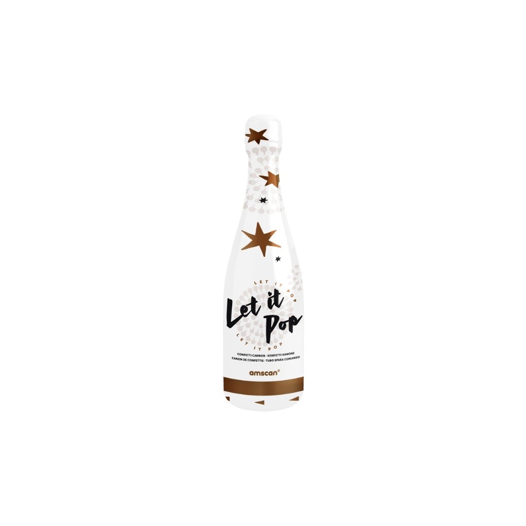 Vystřelovací konfety které jsou umístěny v lahvi sektu, opravdu. Skvělý doplněk na narozeninovou oslavu kde vytvoříte opravdový efekt překvapení. Velikost lahve je 32 cm a po otočení spodní části vyletí ven fóliové konfety ve zlaté barvě. Materiál konfet: fólieTvar konfet: hvězdaBarva konfet: Rose GoldVelikost: 32 cmBalení: 1 ks Video s návodem k použití efektem naleznete pod tímto odkazem.Doplňkové parametry