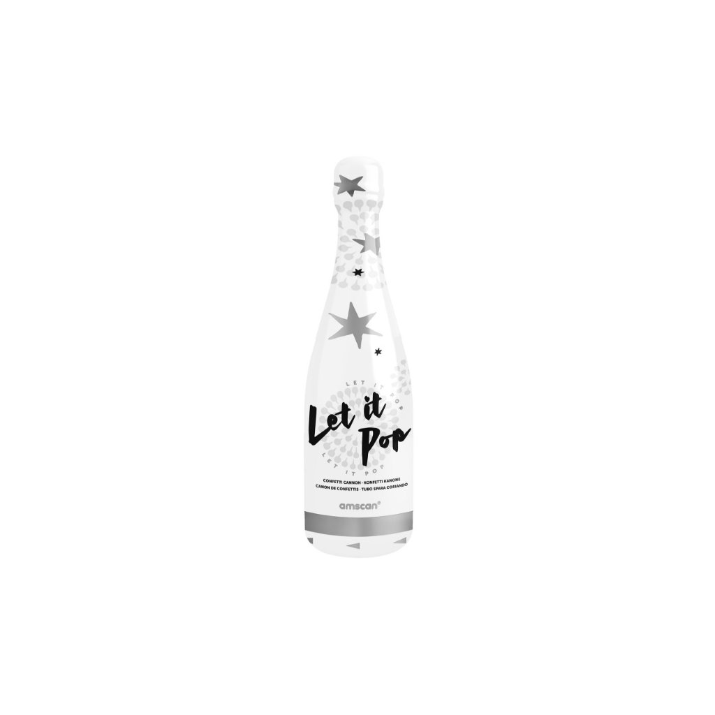 Vystřelovací konfety které jsou umístěny v lahvi sektu, opravdu. Skvělý doplněk na narozeninovou oslavu kde vytvoříte opravdový efekt překvapení. Velikost lahve je 32 cm a po otočení spodní části vyletí ven zlaté konfety ve tvaru hvězd. Materiál konfet: fólieTvar konfet: hvězdaBarva konfet: stříbrnáVelikost: 32 cmBalení: 1 ks Video s návodem k použití efektem naleznete pod tímto odkazem.Doplňkové parametry