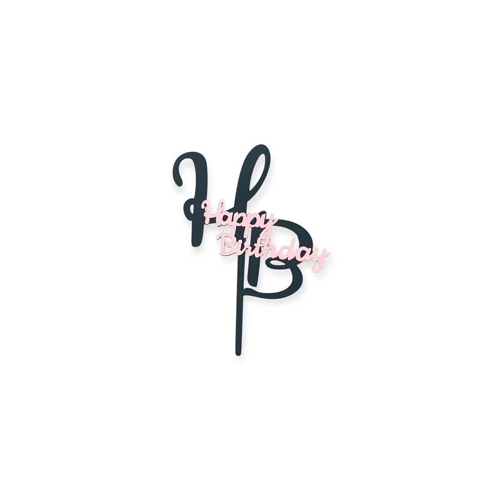 Zapichovací dekorace na dort černo-růžová Happy Birthday ♡