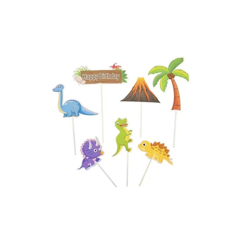 Zapichovací dekorace na dort Happy Birthday s dinosaury (7 ks) ♡