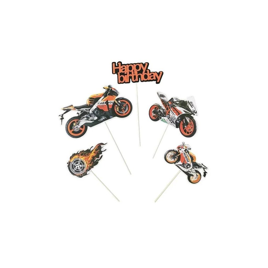 Zapichovací dekorace na dort Happy Birthday s motorkami (5 ks) ♡