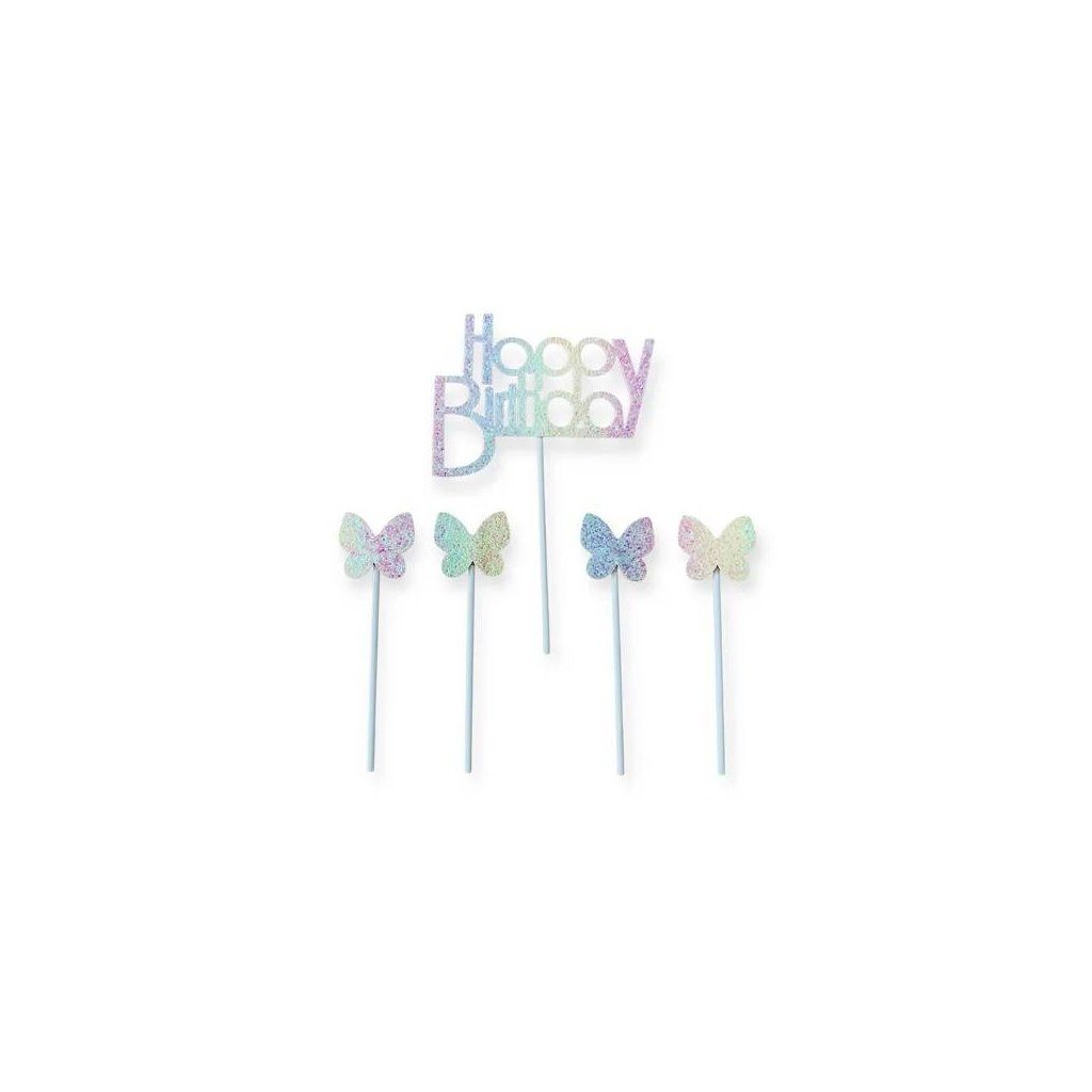 Zapichovací dekorace na dort Happy Birthday s motýlky (5 ks) ♡