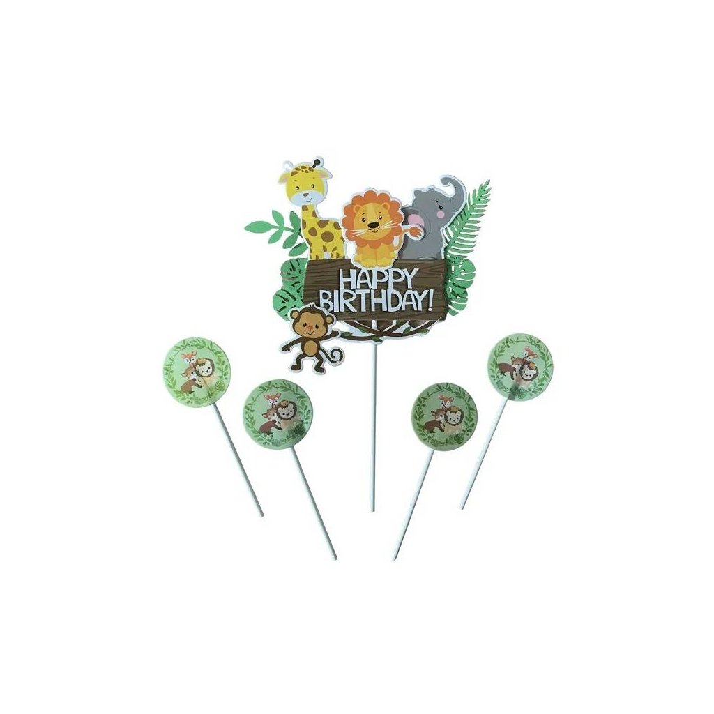 Zapichovací dekorace na dort Happy Birthday safari (5 ks) ♡