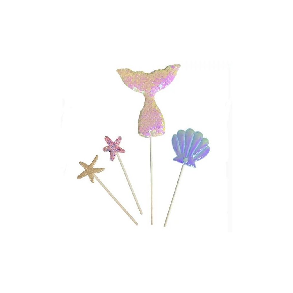 Zapichovací dekorace na dort Ocas mořské panny světle růžový s mušlí a hvězdicemi (4 ks) ♡