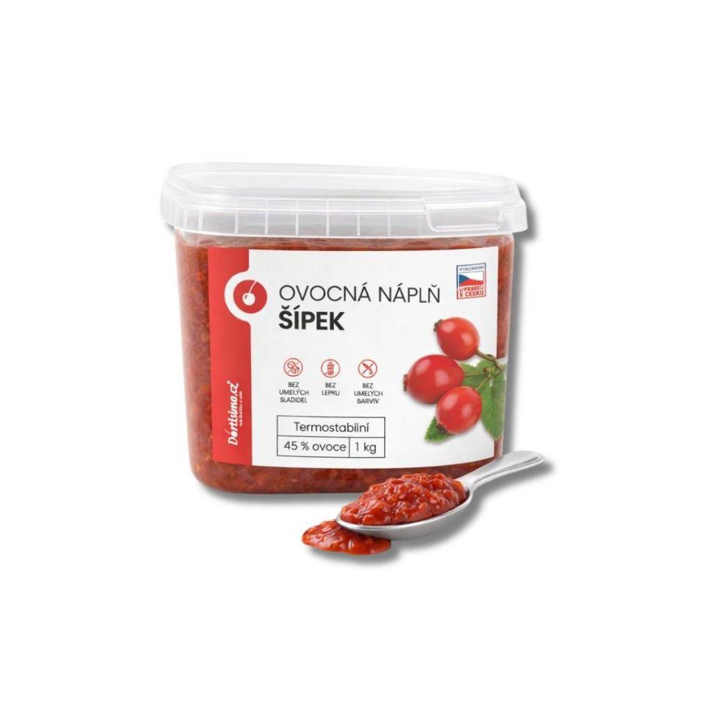 Cukrářské potřeby a suroviny pro sladké pečení. Skvělá volba. Báječný pro vaše dorty a pečení. Ovocná náplň Šípek (1 kg) je běžně skladem a jeho dodací lhůta je 2 až 3 pracovní dny.Produkt pro domácí cukráře: Ovocná náplň Šípek 1 kg