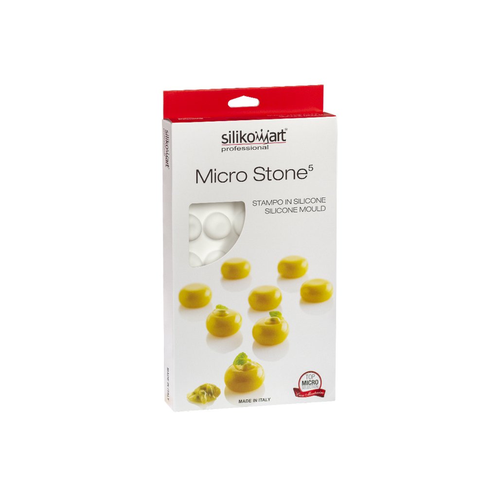 Profesionální silikonová forma k výrobě dokonalých, překrásných mini kamínků ze serie Micro pastry Jewels svořenou Pastry Chefem Luca Montersino. Forma umožňuje vytvořit 35 porcí, každá o objemu 5 ml, které mohou být dále dokončeny posypáním kakaem či glazovány. Každá forma je opatřena speciálním, inovativním okrajem na vrchní části každé dutiny, který zajistí originální zakulacení základny výrobku a snadnější vyjmutí výrobku z formy. Formu lze použít ve sladké i slané kuchyni, v troubě, šokeru, mikrovlnné troubě, v rozsahu teplot od -60°C do +230°C. Lze ji mýt ručně nebo v myčce na nádobí. Před použitím opláchněte formu ve vodě.