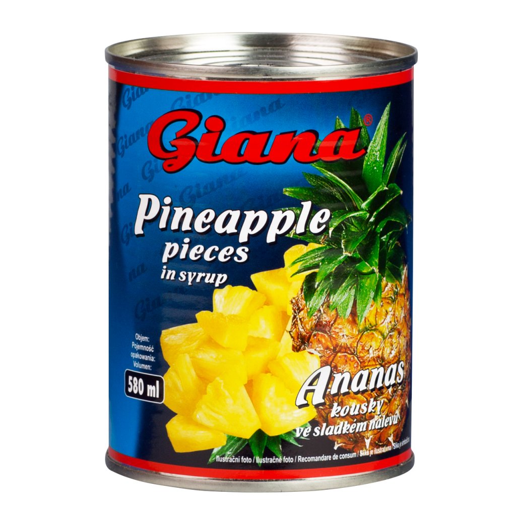 - Ananas kousky ve sladkém nálevu. Zpracované sterilované ovoce.