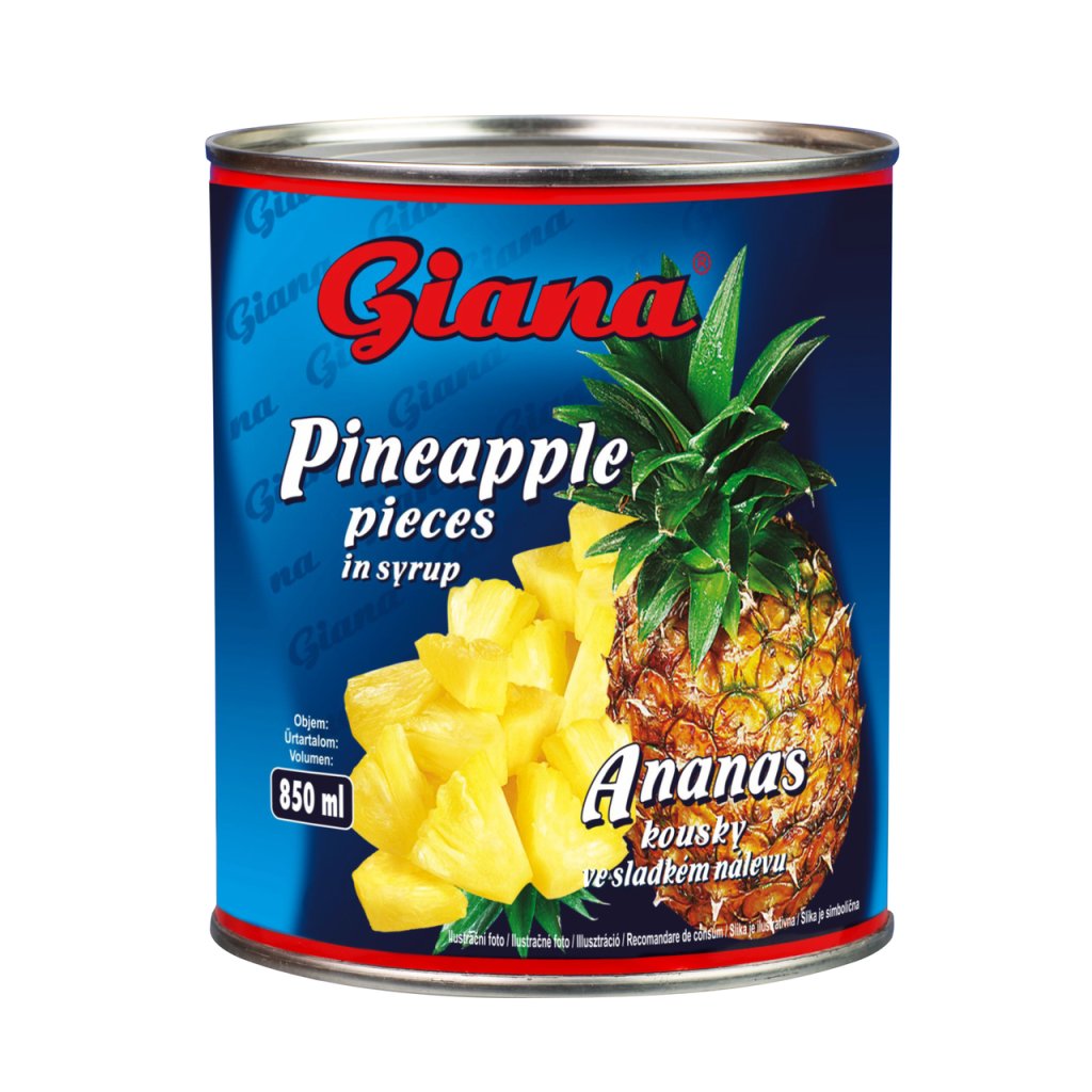 - Ananas kousky ve sladkém nálevu. Zpracované sterilované ovoce.
