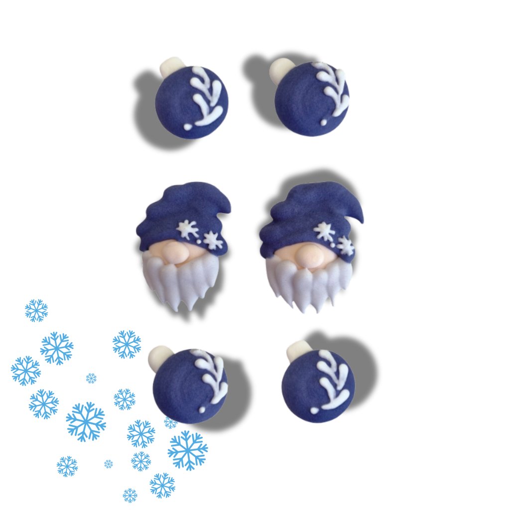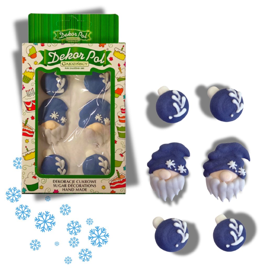 3D sladká vánoční dekorace 6 ks - Trpaslík a baňka - modré