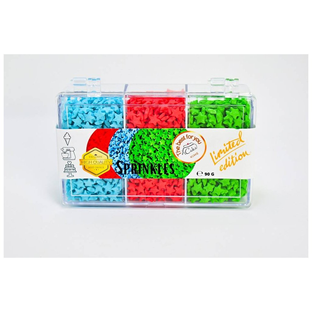 Cukrové hvězdičky červené, modré a zelené (90 g) ♡