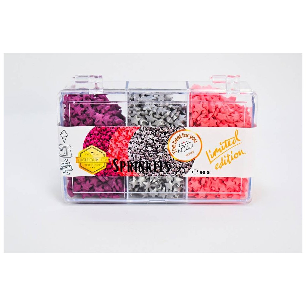 Cukrové hvězdičky fialové, růžové a stříbrné (90 g) ♡
