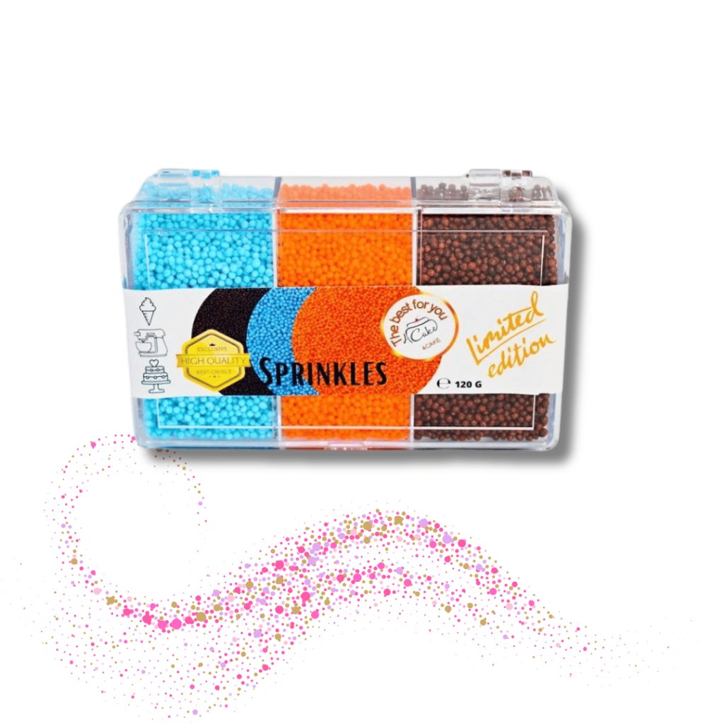 Cukrový máček hnědý, modrý a oranžový (120 g) ▹
