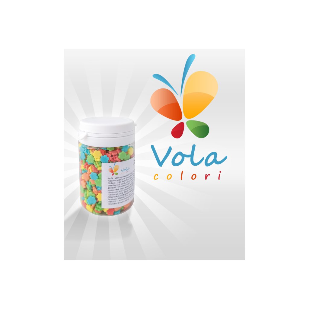 Cukrové pestrobarevné kytičky. Používají se na dekoraci dortů a zmrzlinových pohárů.