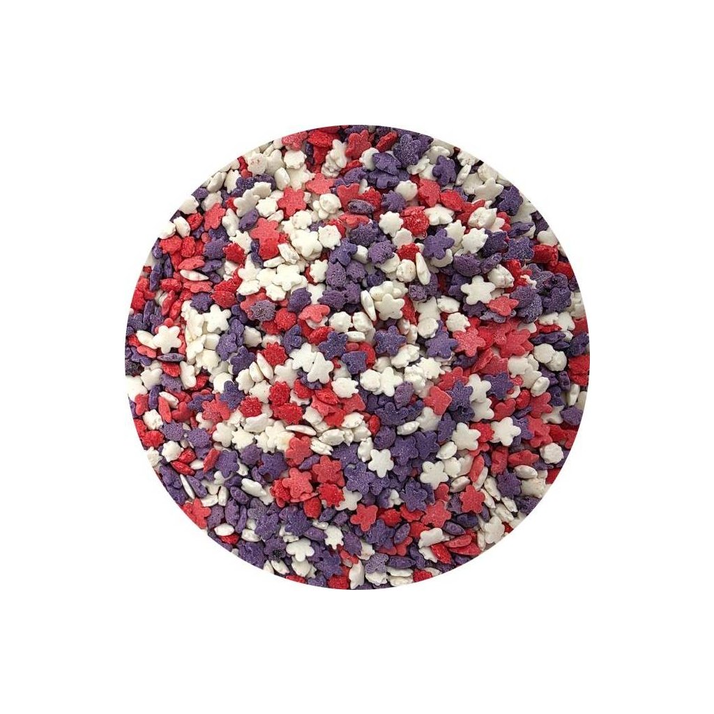 Cukrové zdobení červeno-fialovo-bílý mix 80g - I LOVE CAKES | Skvělé pro Váš domácí dort