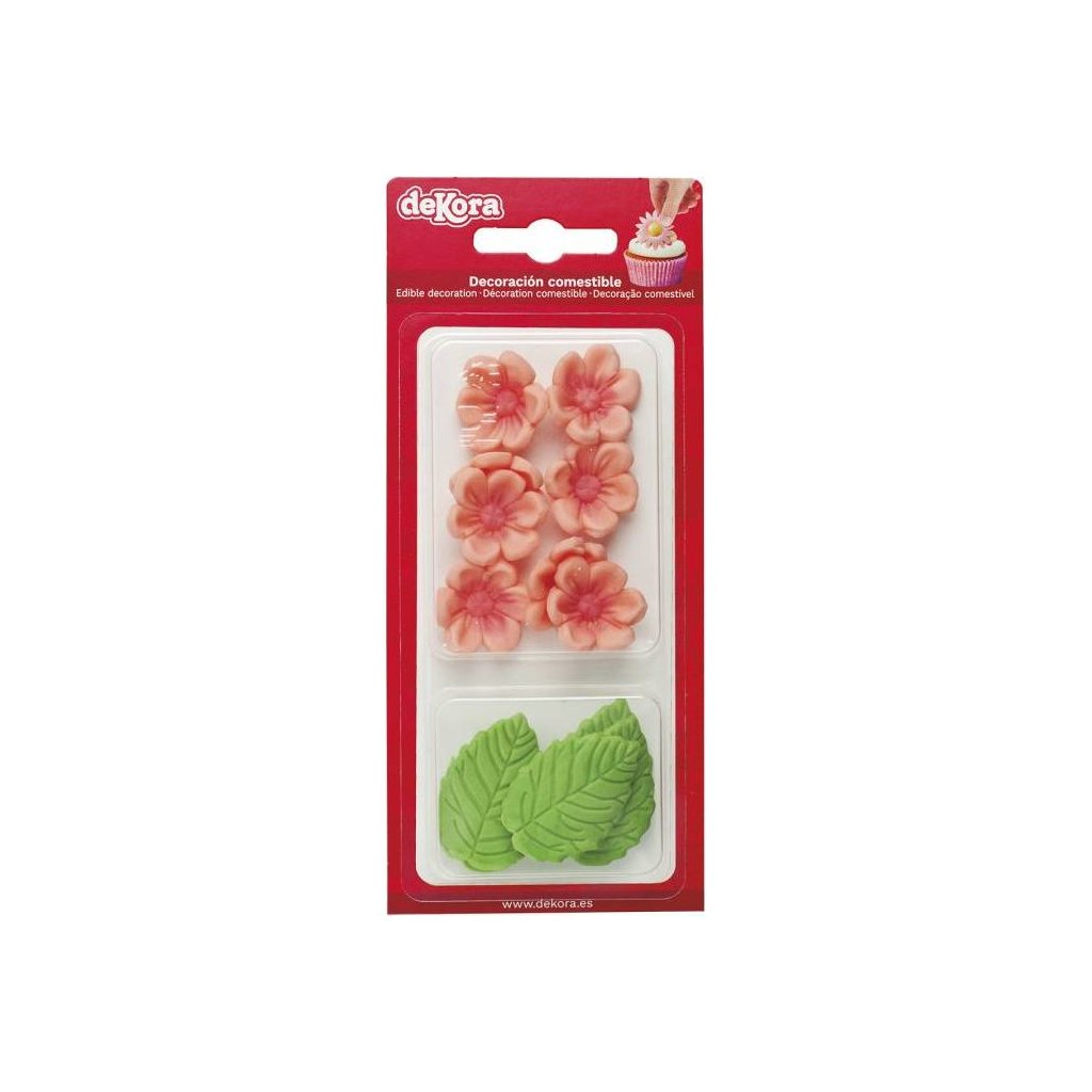 Cukrová dekorace obsahuje 8 růžových květů kopretin a 5 zelených lístků.Doplňkové parametry