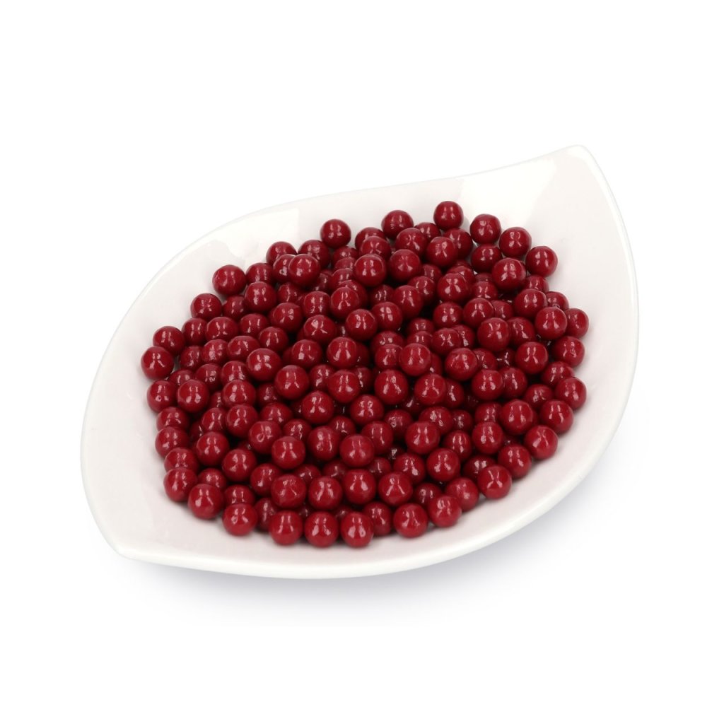 Tyto krásné kuličky jsou potažené nádhernou tmavě červenou glazurou, která je dodává na vánočním cukroví zářivý a sváteční vzhled. Jejich intenzivní barva a lesk vaše vánoční cukroví doslova oživí. A co je na nich nejlepší? Můžete je použít i na dorty a tématické dezerty. Představte si, jak nádherně budou vypadat na vánočním dortu nebo třeba jako kuličky cesmíny na vánočním cukroví. Doporučujeme dekorovat společně s ručně vypichovanými lístky cesmíny.