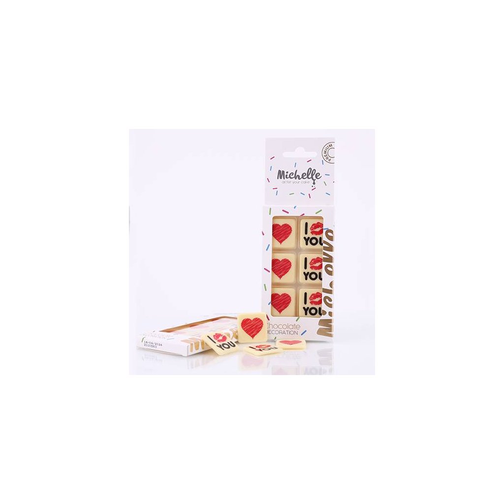 Michelle čokoládová dekorace I Love You čtverce (6 ks) ♡