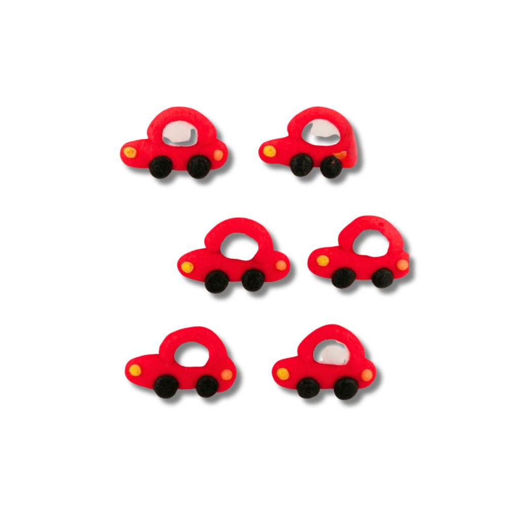 Ozdoba z královské glazury - červená autíčka 9 ks Cukrová dekorace na dort a cupcakes