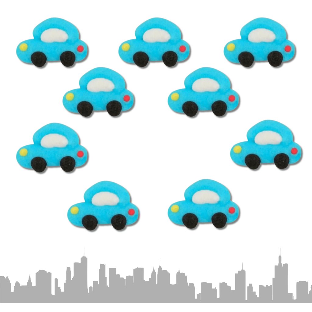 Ozdoba z královské glazury - modrá autíčka 9 ks Cukrová dekorace na dort a cupcakes