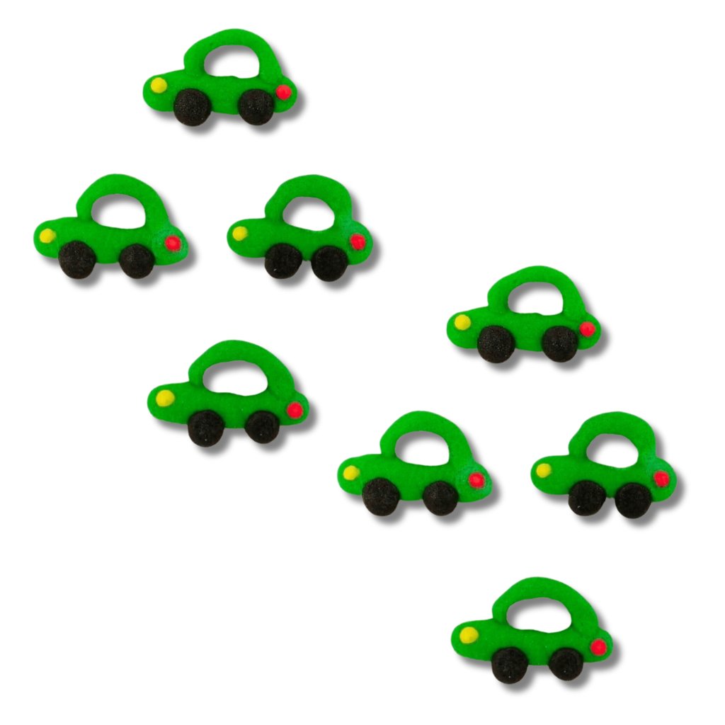 Ozdoba z královské glazury - zelená autíčka 9 ks Cukrová dekorace na dort a cupcakes
