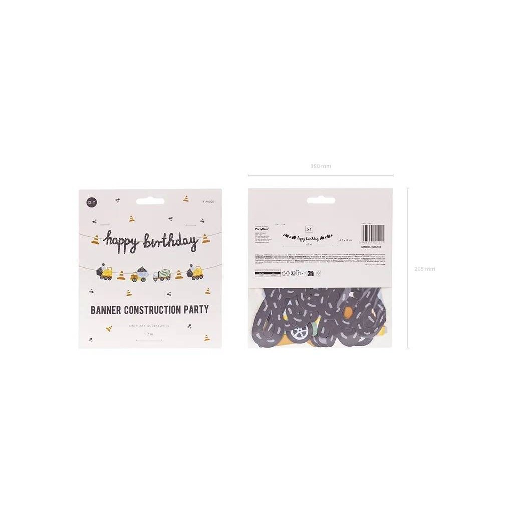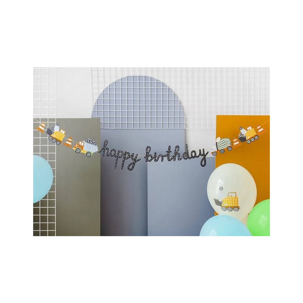 PartyDeco girlanda s motivem stavby Happy Birthday ♡