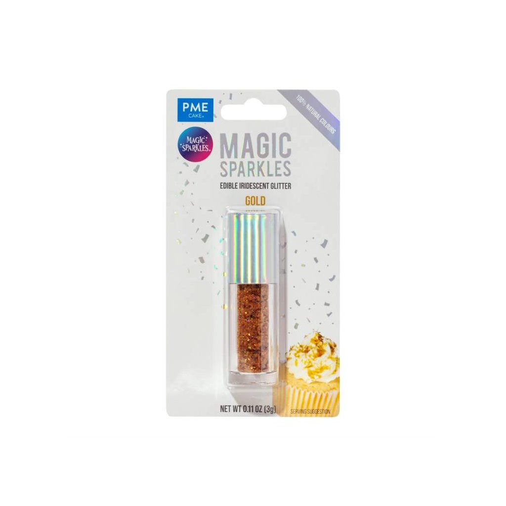 PME glitry jsou 100% jedlé a veganské, vyrobené z rostlinných barev. Používejte na suché povrchy, aby se glitry nerozpustily. Jsou ideální pro dodání oslnivého nádechu vašim výrobkům. Složení: maltodextrin, barviva Annatto Norbixin, extrakt z jablka a kakaaDoplňkové parametry