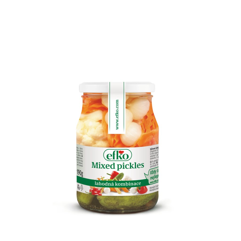 Nepřehlédněte naše kategorie: Slané konzervy a paštiky mnohem více. efko Mixed Pickles zelenina 370 ml máme běžně skladem.
