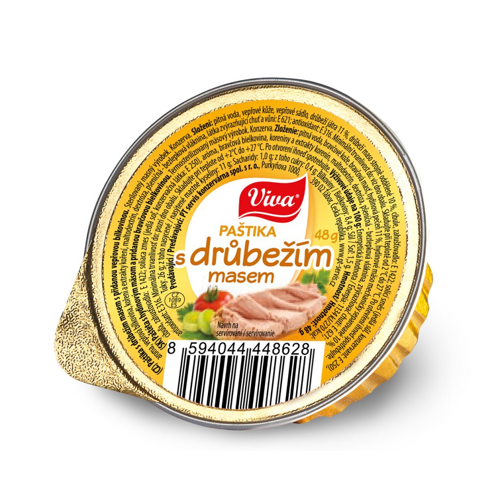 NUTRIČNÍ HODNOTY produktu - VIVA Paštika drůbeží 48 g / 100g výrobku