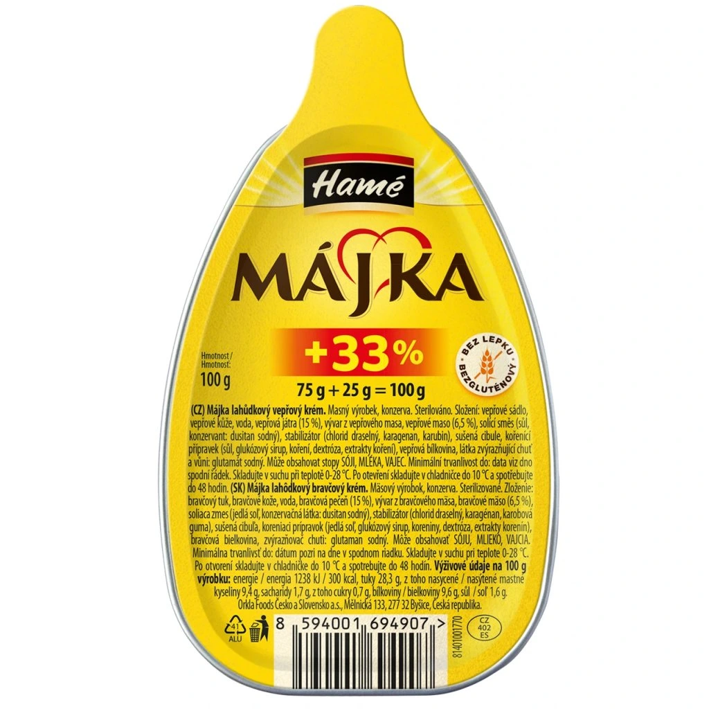 NUTRIČNÍ HODNOTY produktu - Hamé Májka KARTON 16 x 100 g / 100g výrobku