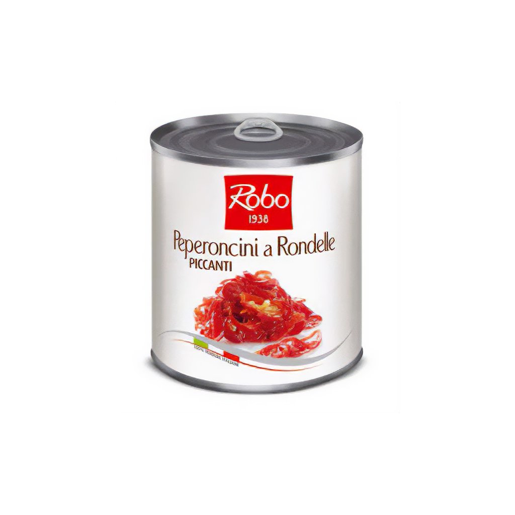 Italské chilli papričky patří pevně do místní kuchyně. Přidávají se do mnoha pokrmů, i z běžné pasty vykouzlí kulinářský zázrak. Pálivé papričky značky Robo se prodávají v plechovce a naložené ve slunečnicovém oleji. Jsou nasekané na malé kousky, což usnadňuje jejich použití. Ideální pro dodání pikantního nádechu každému pokrmu; Perfektní k dochucení těstovin, pizzy,nebo bruschetty.