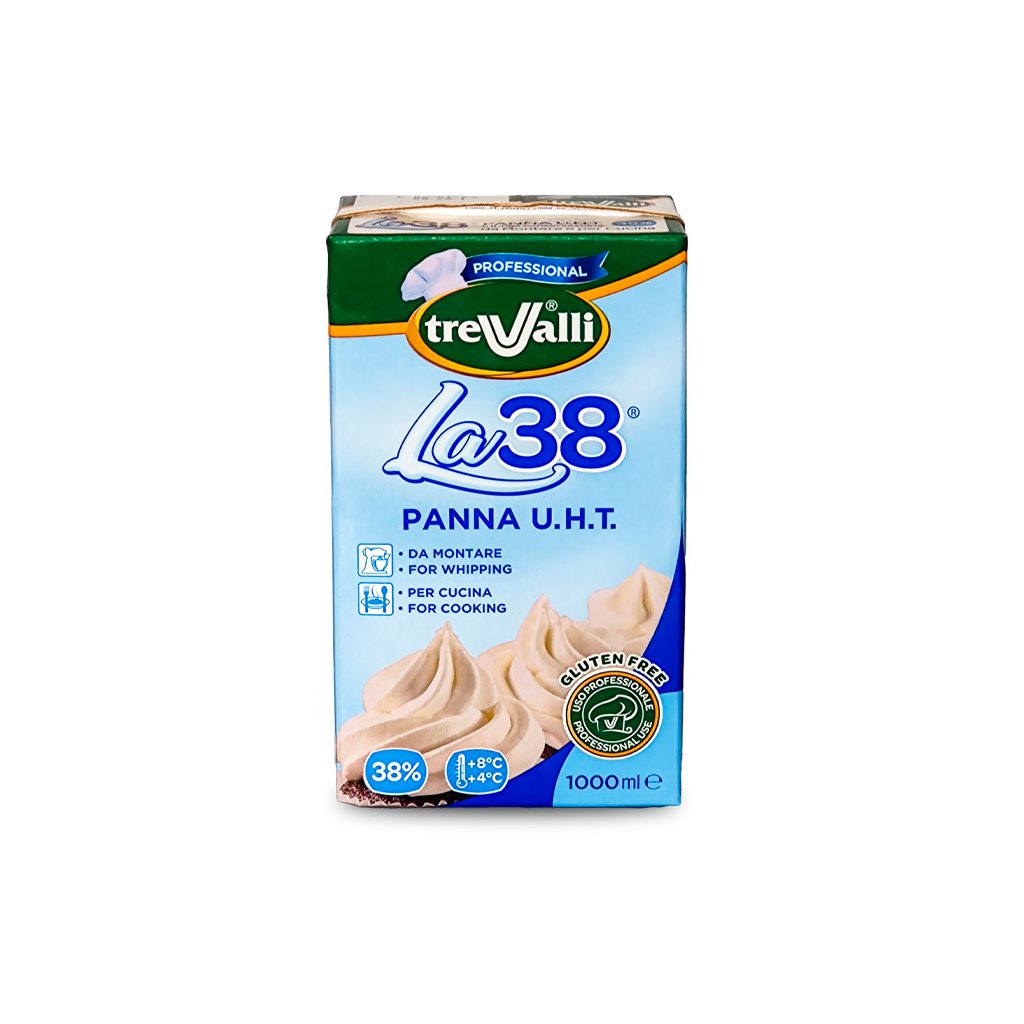 Smetana 38% UHT trvanlivá , balena moderní technologií v aseptickém prostředí do obalu tetra pak, bez konzervačních přípravků. Vysoce kvalitní šlehačka velmi vhodná pro cukrářskou výrobu, po našlehání drží pevný tvar i bez použití ztužovače. Díky své chuti a kvalitě má široké využití v gastronomii. Doporučuje se šlehat při teplotě: 4°C až 8°C, 24 hodin předem vychladit v lednici.