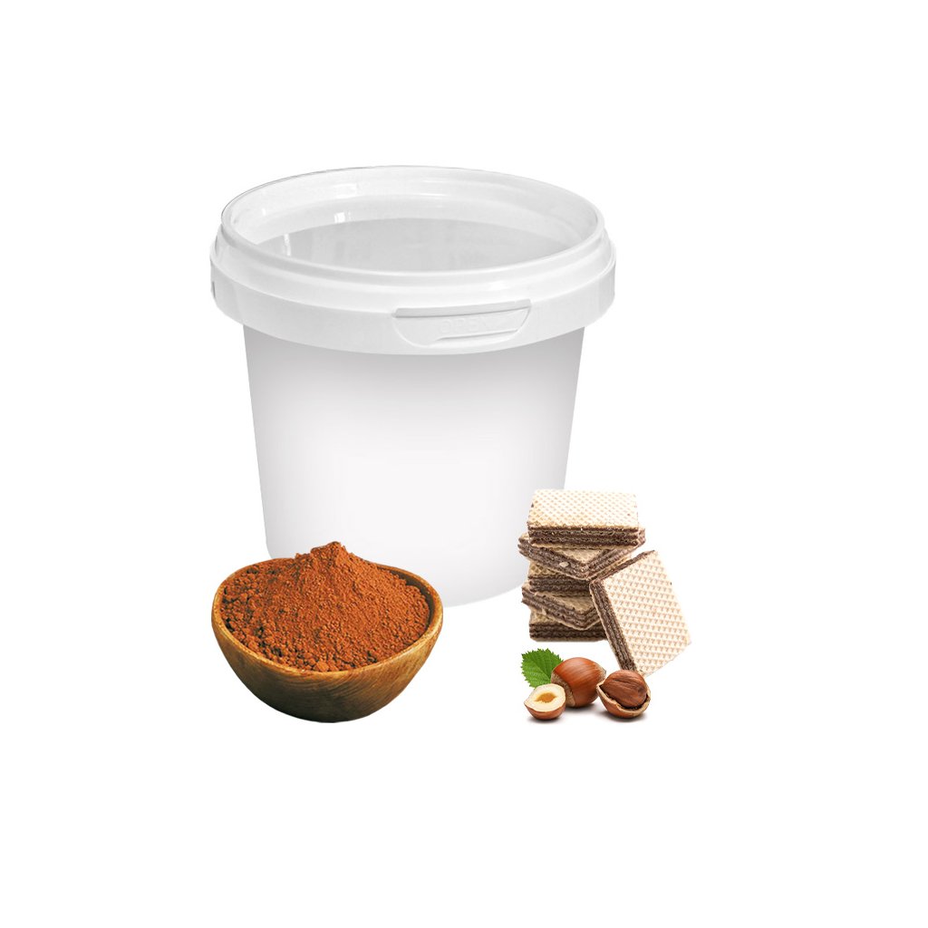 Hotový jemný ochucovací protírací krém na bázi lískových oříšků a kakaových oplatek, určený k polévání a protírání zmrzliny, na ochucování cukrářských výrobků a náplní do pralinek i na polévaní palačinek.