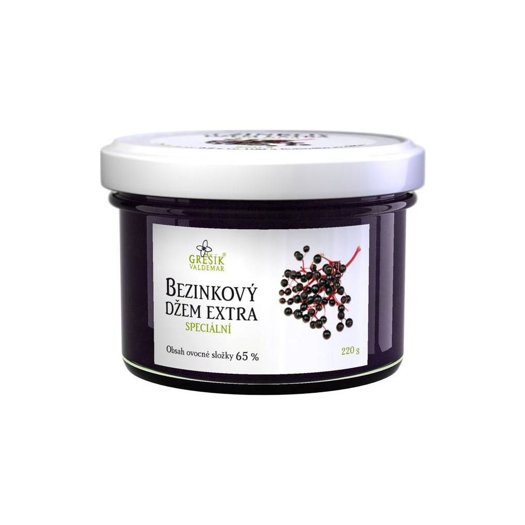 Džem z bezinek extra se sníženým obsahem cukru Grešík. Balení 220 g.Doplňkové parametry