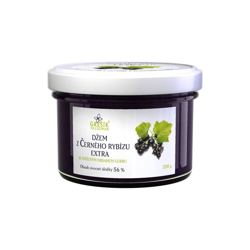 Džem z černého rybízu extra se sníženým obsahem cukru Grešík. Balení 220 g.Doplňkové parametry