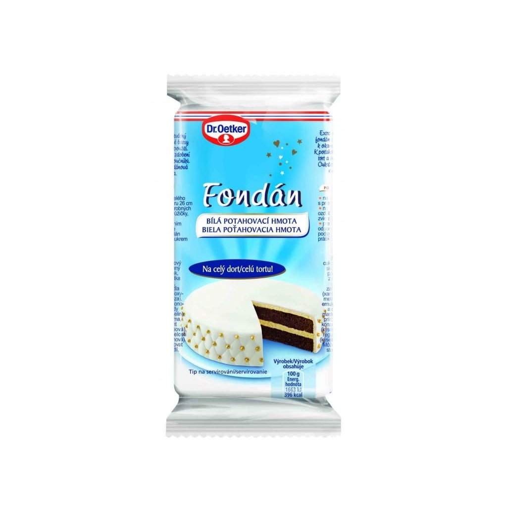 Extra hladký, tvárný fondán čistě bílé barvy k okamžitému použití. K potahování a zdobení dortů a jiných moučníků. Vystačí na potažení celého dortu o průměru 15cm, PRO VĚTŠÍ DORTY DOPORUČUJEME 2-3 balení. Neobsahuje palmový olej.