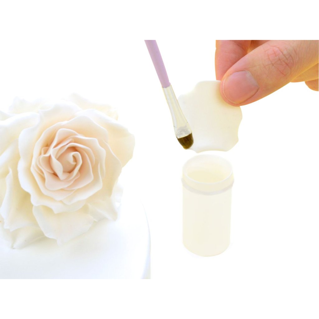 Jedlé lepidlo - vhodné pro sestavování dekorací a ozdob z gumové pasty, rolovaného fondánu, marcipánu a královské polevy. Za tímto účelem navlhčete povrchy tence lepidlem a poté díly spojte a nechte zaschnout.