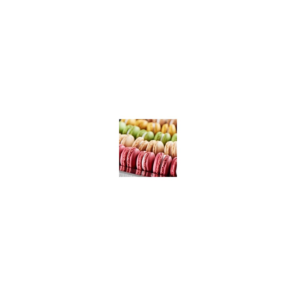 S pomocí kompletní směsi Macaronmix vyrobíte makronky přesně takové, jaké mají být - hladké na povrchu, bez prasklinek, křupavé navenek a přitom měkké uvnitř, nadýchané, s příjemnou mandlovou chutí. Korpus (základní receptura): 1000 g Macaronmix, 200 g voda. Suroviny mícháme lyrou na 2. rychlostní stupeň po dobu 5 min. Sáčkem s hladkou trubičkou nastříkáme na plech pokrytý silikonovým plátem cca 120 makrónků (přibližně 10 g těsta) a necháme schnout cca 1 hod. Pečeme cca 25 min. při 140-150°C. Náplň: 200 g Macaronmix, 250 g máslo, 20 g ochucovací pasta. Máslo pokojové teploty smícháme se směsí a ochucovací pastou. Složení: cukr, mandle (22%), škrob pšeničný, vaječný bílek sušený, rostlinný olej (řepkový), emulgátory (E472b, E477), glukózový sirup sušený, sušené odtučněné mléko, zahušťovadlo E415, sůl Nutriční hodnoty ve 100 g: energie 1914 kJ/456 kcal, tuky 14,46 g (z toho nasycené 2,22 g), sacharidy 72,84 g (z toho cukry 64,46 g), vláknina 2,45 g, bílkoviny 7,44 g, sůl 0,14 gDoplňkové parametry