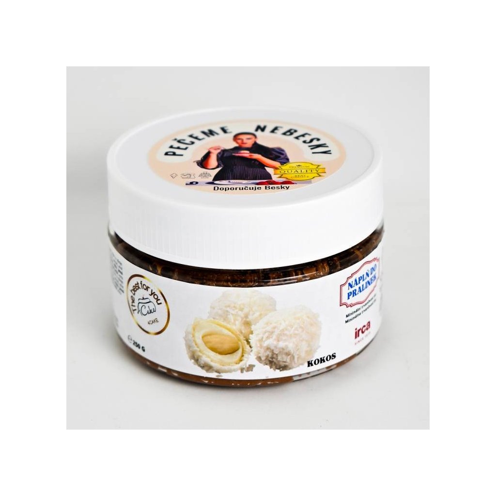 Jemná pasta z bílé čokolády s kousky kokosu a s křupavými máslovými sušenkami. Je připravená k okamžitému použití. Vhodná do pralinek, zmrzlin, do krémů nebo k potírání korpusů. Složení: mléčná čokoláda 22% (cukr, sušené plnotučné mléko, kakaové máslo, kakaový prášek se sníženým obsahem tuku, emulgátor sójový lecitin), cukr, rostlinný olej (slunečnicový, palmojádrový, kokosový, palmový), jemně rozdrobené sušenky 14% (pšeničná mouka, cukr, bezvodý mléčný tuk, sušené odtučněné mléko, jemná sladová mouka, sůl), sušená syrovátka, kokosové vločky, bezvodý mléčný tuk, emulgátor sójový lecitin, aroma Nutriční hodnoty ve 100 g: energie 2335 kJ/560 kcal, tuky 35,6 g (z toho nasycené 18,8 g), sacharidy 53,7 g (z toho cukry 47,9 g), vláknina 1,8 g, bílkoviny 5,3 g, sůl 0,3 gDoplňkové parametry