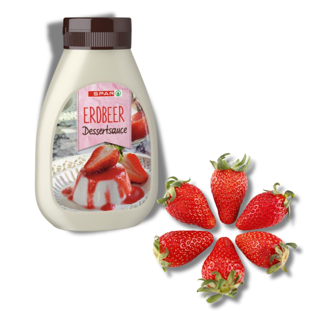 Lahodná dezertní omáčka je vytvořena na základě pečlivě vybraných ingrediencí, kde hlavní roli hraje koncentrát jahodové dřeně v 24% podílu. Základ tvoří kombinace kvalitního cukru a glukózového sirupu, které společně vytváří dokonale vyváženou sladkost. Čistá voda slouží jako pojící prvek všech ingrediencí.